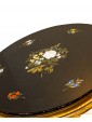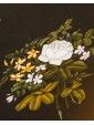 This refined circular table, a product of the mastery of a 19th-century Florentine workshop, embodies the sublime synthesis of fine cabinet-making and the ancient art of commesso in pietre dure (hardstone inlay). The top is a chromatic and compositional masterpiece: an elaborate floral inlay flourishes upon a base of polished black marble. The central bouquet, dominated by a pristine white rose and surrounded by yellow and white jasmine, is encircled by six satellite sprays—among which one can recognize delicate pink roses, deep blue forget-me-nots, white bellflowers, and vibrant orange corollas.