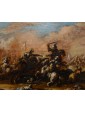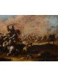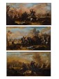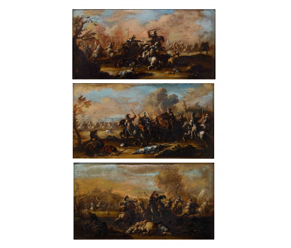The three battle scenes offered here are to be included in the extensive catalog of the Neapolitan painter "Ciccio Graziani" (also known as "Ciccio Napoletano"), the nickname by which the artist Francesco Graziani is best known. Graziani's corpus is characterized by numerous small-format canvases animated by small figures that, thanks to their vibrant coloring, stand out against the bluish tones of the background.