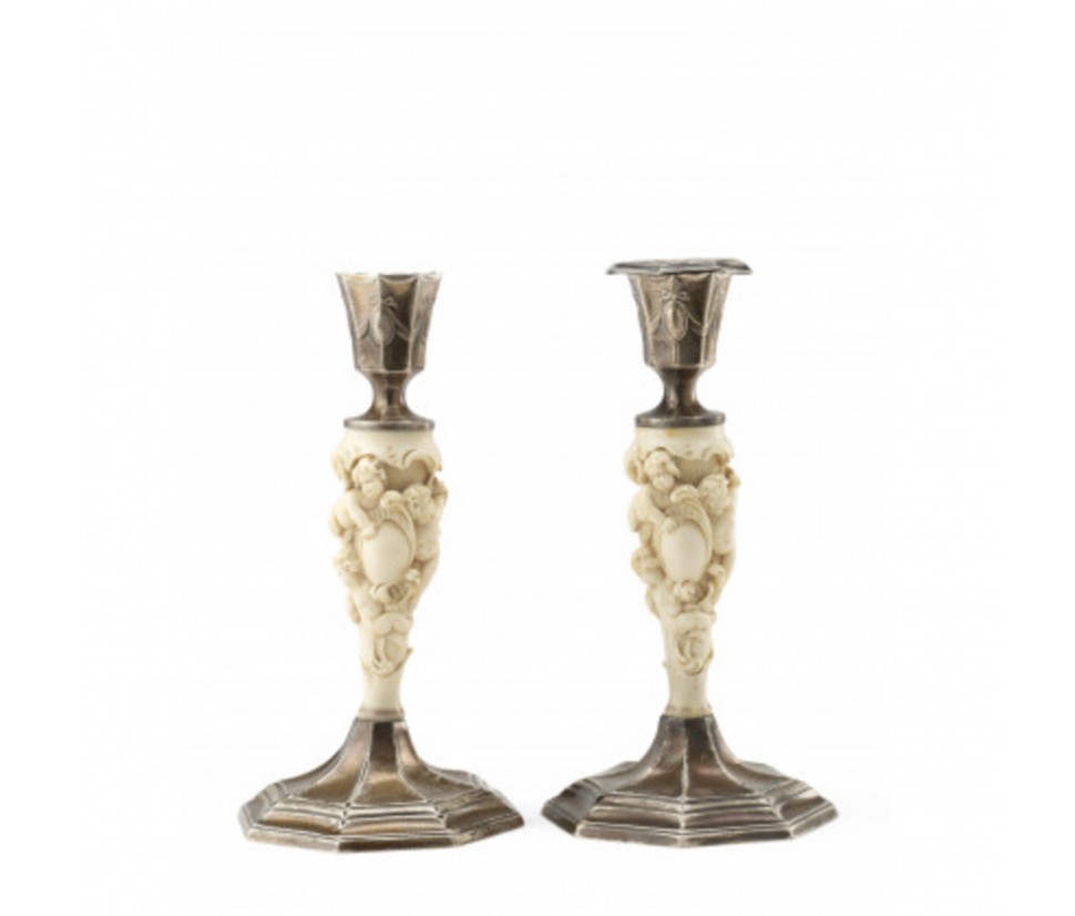 This pair of candlesticks, crafted in 1923 in Sheffield by the renowned workshop Joseph Rodgers & Sons, represents a sublime example of the refined synthesis between precious metallurgy and the art of carving. The objects feature a slender and elegant structure, where the cool brilliance of the silver harmoniously blends with the warmth of the ivory.