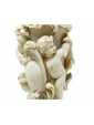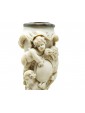 The central part of the stem is entirely dedicated to a complex decoration in carved ivory, animated by finely sculpted figures of putti that seem to emerge from an intertwining of vegetal and floral motifs. These small winged geniuses, rendered with extreme plastic softness, support a smooth central shield framed by scrolls and acanthus leaves, lending the ensemble a dynamism typical of late-century Neo-Baroque taste. It is interesting to note that, while the silver components were manufactured in the 1920s, the ivory sections were likely crafted in the 19th century