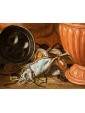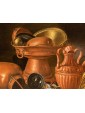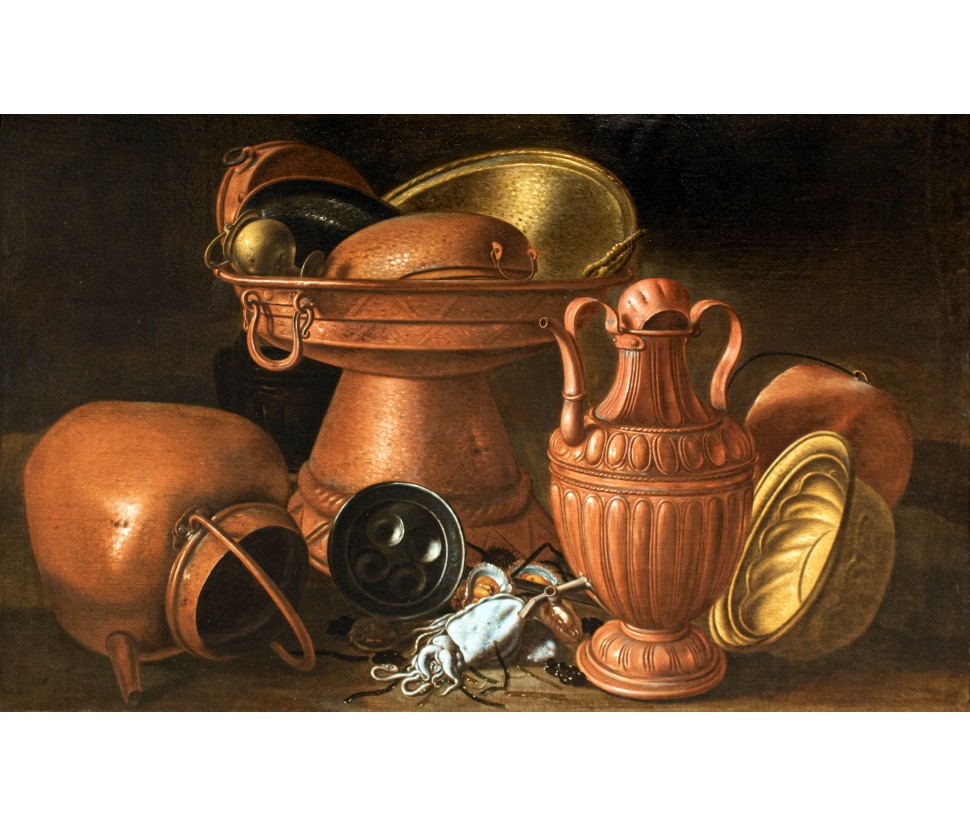 The refined predilection of Ruoppolo for copper veils left a written trace Bernardo De Dominici, valuable biographer, testifying that the artist "also painted in imitation of his Uncle Gio. Battista cose di rame" (Lives of painters, sculptors and architects from Naples, III, Naples 1743, p. 299). The reference to Ruoppolo’s uncle is a fundamental documentary support in the reconstruction of Giuseppe’s artistic story. It is known to the sources only that he died in 1710 eighty years old, from which data shows that he was born in 1630, and that the monogram "GRU", with which one time used to recognize the homonymous monogramer, is actually referring to Joseph, that in the painting Interior of kitchen with branches and vettovaglie (already in Naples in the collection Dalla Vecchia), had placed such a signature. The artist was apprenticed to his almost contemporary uncle (1629-1693), who was the main proponent of Neapolitan Baroque naturamorphism, in turn a pupil of Paolo Porpora and a contemporary of Salvator Rosa. Unlike his uncle, however, Giuseppe produced works similar to the naturamorphism of the early seventeenth century, commemorating the beginnings of Neapolitan production. The artist was influenced by Luca Forte, who had been part of the workshop of Aniello Falcone, and whose nature was initially marked by a revivalistic caravaggismo.