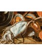 The production of still life in Ruoppolo ranged from pantagruelic sets of first fruits to minute handfuls of the most immediate fruits on earth, such as zucchini, tomatoes and flowers. A Nature with flower pot, now in private collection, is signed "Giuseppe Rop" on the vase; but there are no more extended signatures, for example in a second Still Life with melons and apricots in private collection, where the artist’s name appears on a blunt stone in the right corner of the painting. The present renews the compostably crowded compositions equal to the Fruit and flower pot in a landscape of the Museum of Nevers, signed, as well as the Grapes, peaches, melon, figs, plums and flowers of the Museum of Nantes, also signed. Oysters and sea fruits had already appeared in the Red Crab still life at the Museum of Fine Arts in Budapest, very close to the ways of Elena Recco.
