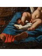 The group in the foreground of the Virgin with the Child and Saint Giovannino is framed in a pyramid scheme that resolves the affectionate embrace of the Mother to the older child and the gestuality linked to both everyday life, in the legs stretched on the ground of Our Lady or in the thundering pose of the Infant Jesus, both to the sacredness in the prayerful pose of the little Baptist.