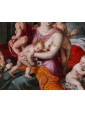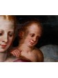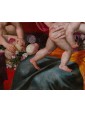 Occorre sottolineare come il dipinto sia stato realizzato da Floris con la collaborazione della sua bottega. All'epoca era infatti consuetudine per i maestri pittori avvalersi dell'aiuto di allievi e collaboratori per la realizzazione di opere di grandi dimensioni o commissioni multiple. La bottega di Floris, come quella di Sellaer era particolarmente attiva e specializzata, producendo numerose varianti sulla stessa tematica. Possiamo dunque riconoscere la mano del Maestro negli incarnati e nei volti, i cui colori si fondono armoniosamente tra loro degradando dolcemente gli uni dentro gli altri attraverso la tecnica delle velature. Riconoscibile è invece la mano di un aitante di bottega nei panneggi e nei brani di natura morta. L'artista utilizza un linguaggio pittorico ricco di dettagli e di colori vivaci, tipico del Rinascimento fiammingo. La sua capacità di rappresentare i sentimenti e le emozioni attraverso i volti e i gesti dei personaggi rende quest'opera un'testimonianza significativa della sua arte.
