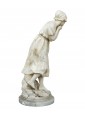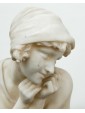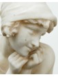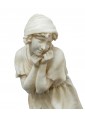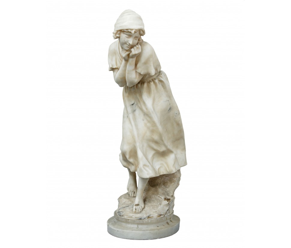 Statuetta in alabastro raffigurante la figura femminile di una giovane contadina. La dolcezza dell’espressione si somma alla grazia della posa, con la testa inclinata sulle mani giunte e il busto racchiuso. Questi dettagli sommati all’incidere incerto suggeriscono tutta la timidezza, l’umiltà e l’innocenza dell’effigiata, colta mentre guarda in lontananza. Lo sguardo tradisce un sentimento di incanto e al contempo desideroso, forse del primo amore o del proprio fidanzato. I costumi modesti, come la berretta e la veste legata in vita, sono resi con panneggi profondi e scavati in contrapposizione con la morbidezza del volto e delle braccia. Il materiale, il periodo storico e il soggetto ricordano le statue realizzate dallo scultore Adolfo Luchini, operante fra XIX e XX secolo e specializzato nella scultura in marmo e in alabastro di soggetti per lo più femminili.